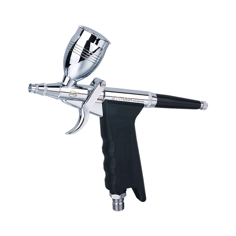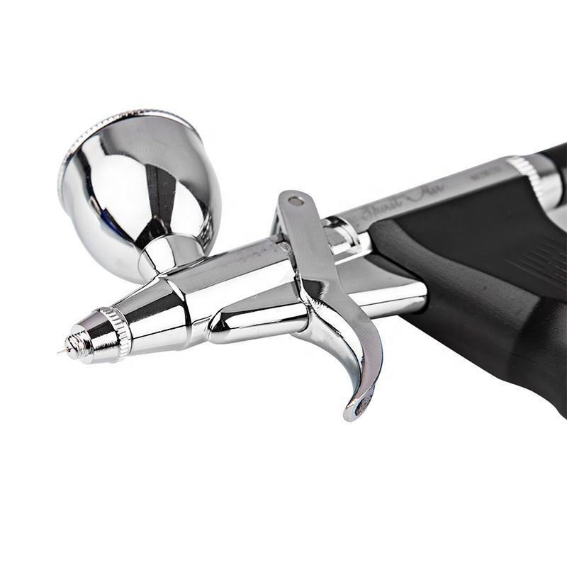 Trong lĩnh vực nghệ thuật cơ thể,     Airbrush-feed trọng lực hành động kép    Đối với nghệ thuật cơ thể, thiết kế bánh và các ứng dụng nghệ thuật móng tay được sử dụng rộng rãi để vẽ cơ thể và hình xăm tạm thời. Thiết kế hành động kép của nó cho phép các nghệ sĩ điều chỉnh linh hoạt lưu lượng sơn và áp suất không khí trong quá trình phun, để có thể tạo ra các mẫu tinh tế, phân lớp và chuyển đổi màu sắc trên da. Hệ thống thức ăn trọng lực đảm bảo cung cấp sơn trơn tru, cho phép các nghệ sĩ tạo ra liên tục và không ngừng mà không bị gián đoạn thường xuyên để bổ sung sơn. Ngoài ra, khả năng phun mịn của bàn chải không khí cho phép các nghệ sĩ vẽ các mẫu phức tạp và chi tiết như hoa, động vật, hình học hình học, v.v ... Trên bất kỳ bộ phận nào của cơ thể, thêm nhiều khả năng sáng tạo và khả năng cho nghệ thuật cơ thể.